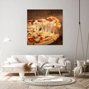 Nechte obraz „Pizza s elastickým sýrem“ stát se jedinečným doplňkem, který dodá vašemu interiéru chuť a styl.