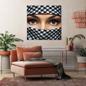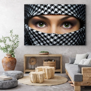 Obraz na plátně - Portrét zahalené zelenooké krásky - 50x70 cm