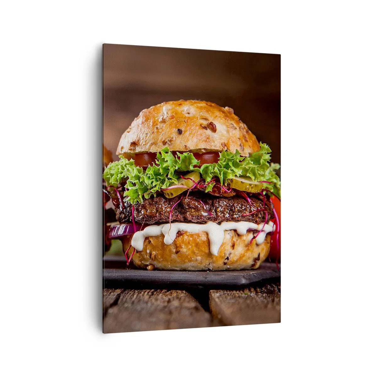Plátno je nataženo na rám. Strany a hrany jsou potištěny, čímž tvoří pokračování obrazu. Obraz je připravený k zavěšení na zeď. Každý výrobek je vybaven závěsem, který je připevněn k rámu a montážní sadou (šroub + kolík).