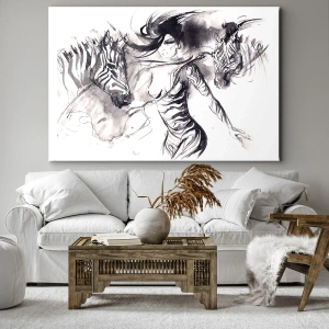 Obraz na plátně - Tančící se zebrami - 50x70 cm