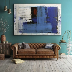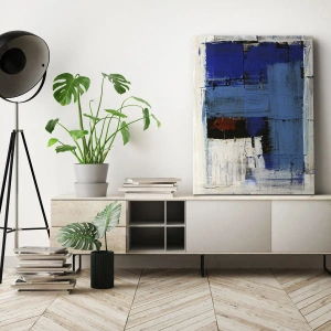 - Abstraktní obraz v odstínech modré, bílé a černé s jemným nádechem červené. Dokonalá dekorace pro moderní, minimalistický nebo umělecký interiér, zdůrazňuje eleganci a individualitu prostoru.
