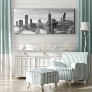 Plátno „Americká krajina“ je unikátní kompozice, která přenese diváka do srdce moderní metropole. Zobrazuje panorama města s majestátními mrakodrapy obklopenými jemnými mraky. Monochromatické barvy v černé a bílé dodávají obrazu jasnost a nadčasový charakter.