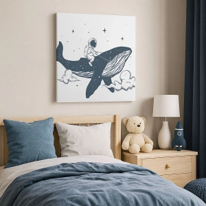 Nástěnný obraz - Vesmírné dobrodružství - Astronaut na velrybě plující ve vesmíru