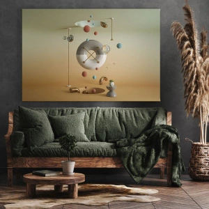 Každý prvek obrazu byl pečlivě navržen tak, aby vytvořil ucelený a harmonický celek. Detaily, jako jsou jemné křivky, kulovité tvary a pastelové odstíny, dodávají dílu lehkost a výraznost. Neutrální pozadí dokonale zdůrazňuje abstraktní charakter kompozice.