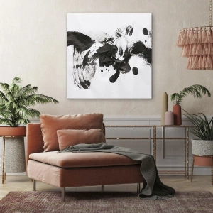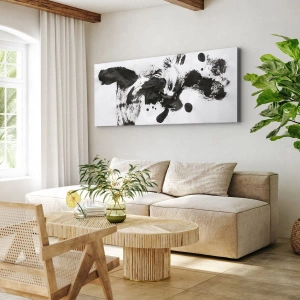 - Obraz zobrazuje abstraktní kompozici černých skvrn na bílém pozadí, což vytváří výrazný kontrast a rovnováhu mezi chaosem a harmonií. Dokonale doplňuje moderní prostory a dodává jim dynamický a umělecký nádech.