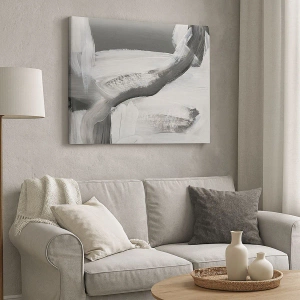 - Tato šedobílá abstrakce s dynamickými liniemi vnáší do každého interiéru moderní a elegantní charakter. Je ideální do obývacího pokoje nebo ložnice a vnáší do prostoru jemný kontrast a harmonii.