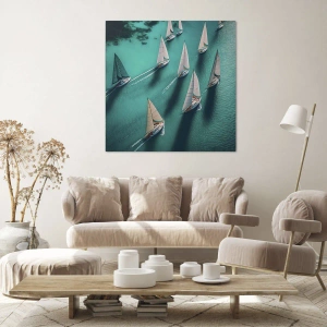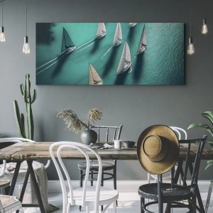 Nástěnné umění - Soutěž s větrem - Jachty na tyrkysové vodě v dynamickém pohybu