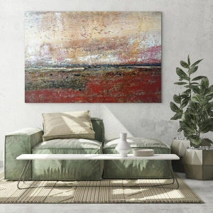 - Umělecká textura v odstínech červené, okrové a zemité barvy vytváří abstraktní, poutavou kompozici plnou hloubky, struktury a intenzivního výrazu.