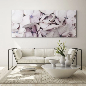 Obraz na skle - Jemné světle růžové hortenzie zblízka - 70x50cm - V záplavě květin - Moderní nástěnná dekorace do obývacího pokoje a ložnice ARTTOR