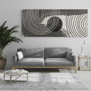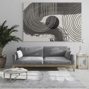 - Abstraktní kompozice s geometrickým oválným motivem a dynamickými liniemi v černé a bílé barvě. Elegantní doplněk pro moderní a minimalistické interiéry – do obývacího pokoje, kanceláře nebo ložnice.