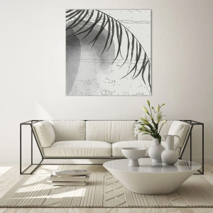 - Minimalistická grafika v odstínech černé a bílé s motivem palmového listu. Tato kombinace jednoduchosti, exotiky a elegance se perfektně hodí do moderních a klidných interiérů.