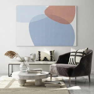- Jemná pastelová abstrakce s jemnými tvary v modré a růžové barvě. Tato kompozice byla vytvořena s ohledem na moderní, světlé interiéry.
