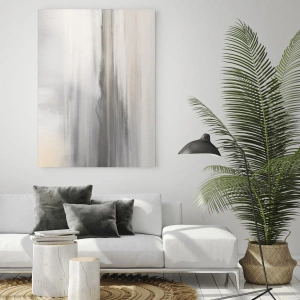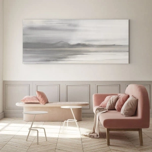 - Toto malířské panorama v odstínech šedé a pastelových barev vytváří jemnou krajinu s rozmazanými konturami hor. Obraz vyzařuje klid a harmonii, ideální pro moderní a skandinávské interiéry.