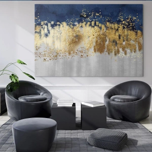 - Tento abstraktní obraz se vyznačuje výraznými zlatými detaily na pozadí tmavě modré a stříbrné barvy. Elegantní dekorace do moderního interiéru.