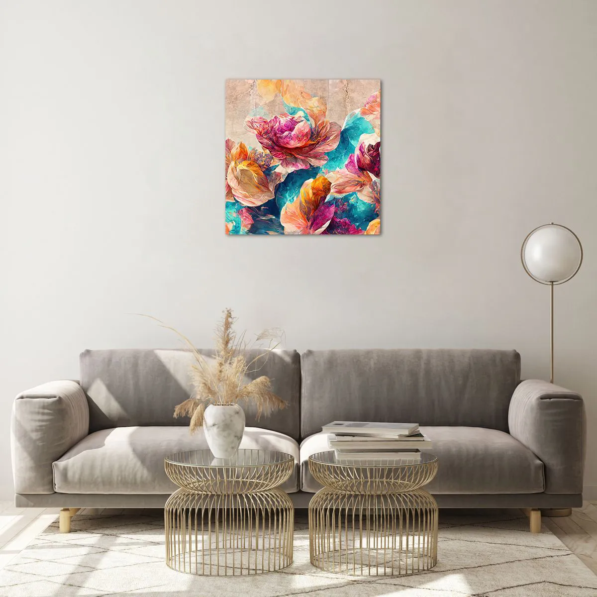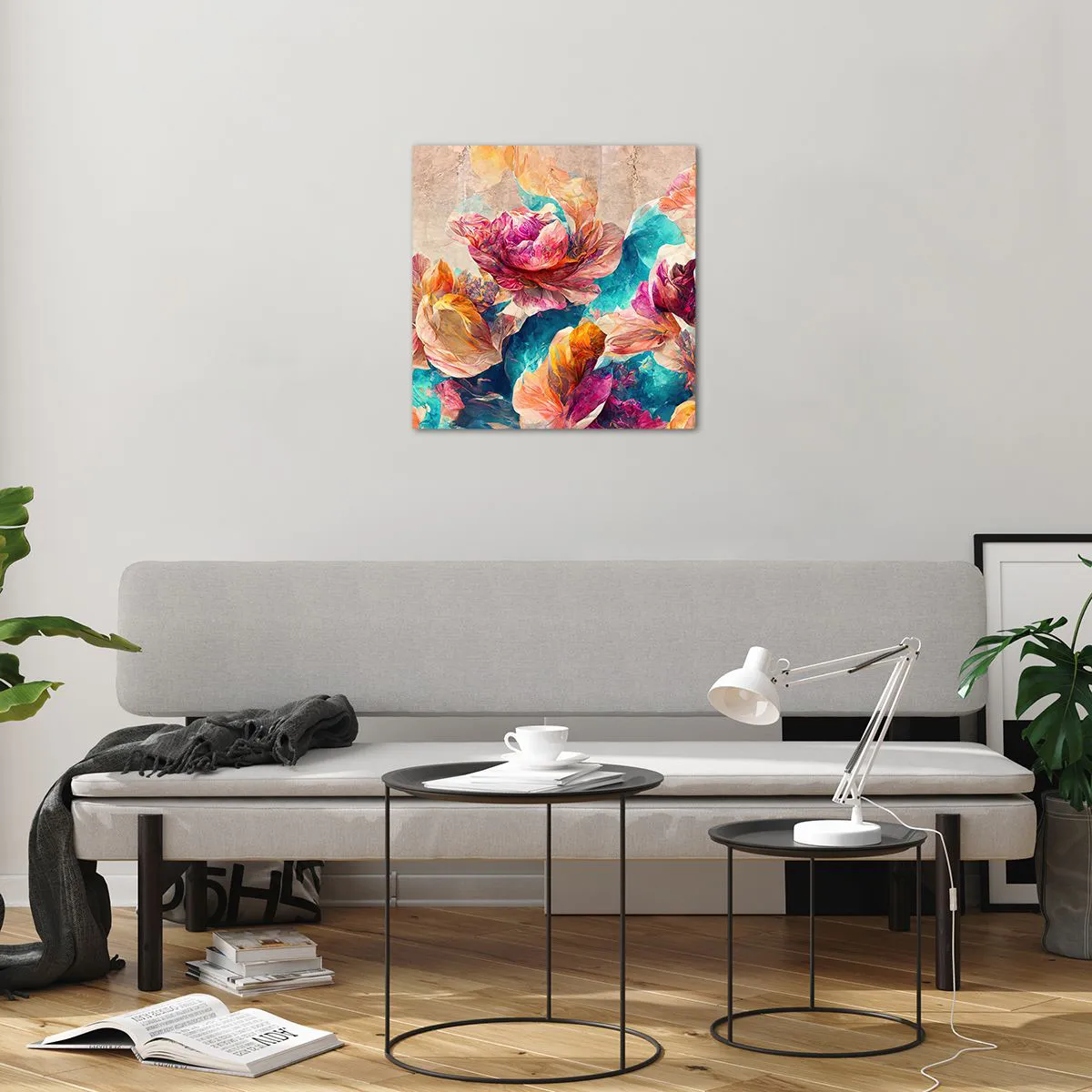 Obraz na skle - Barevné bohatství kytice - 50x50 cm