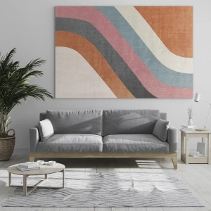 Obraz kombinuje retro styl s moderním přístupem k formě a prostoru. Jeho geometrická přesnost a expresivní barvy přitahují pozornost a oživují jakýkoli interiér. Toto dílo se úspěšně hodí do moderních i klasických aranžmá.