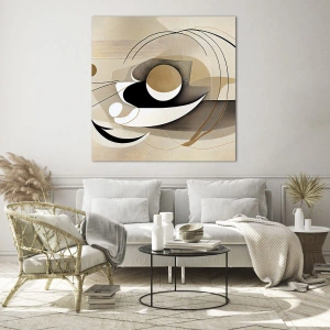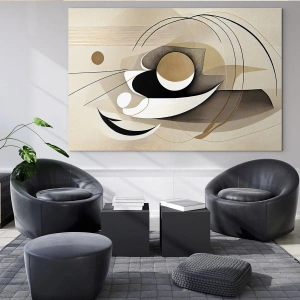 - Moderní abstrakce v odstínech béžové, černé a bílé s geometrickými tvary a jemnými liniemi. Minimalistická forma obrazu se dokonale hodí do moderních a klidných interiérů.
