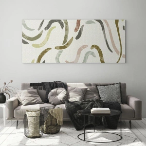 Barvy obrazu byly pečlivě vybrány – jemné, přírodní odstíny se dobře hodí do moderních a minimalistických interiérů. Vlnité linie nejen oživují prostor, ale také vytvářejí pocit plynulosti a svobody. Toto organické uspořádání odpovídá estetice skandinávského a boho stylu.
