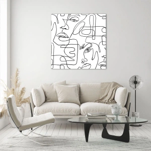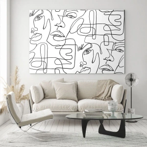 Grafika je v kontrastní černé a bílé barvě, takže se snadno přizpůsobí moderním i minimalistickým prostorům. Minimalistický styl v kombinaci s expresivním sdělením dělá z tohoto obrazu jedinečnou dekoraci, která může být ústředním bodem interiérového designu. Každá tvář je prezentována z jiného úhlu, s jinou emocí, což celému obrazu dodává psychologickou hloubku.