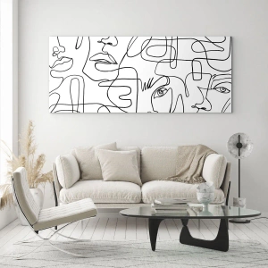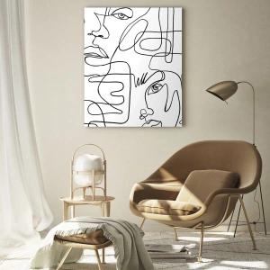 - Liniová malba s černými konturami obličeje na bílém pozadí. Tato kompozice, inspirovaná emocemi a výrazem, se perfektně hodí do moderních interiérů. Ideální do obývacího pokoje, ložnice nebo kanceláře.
