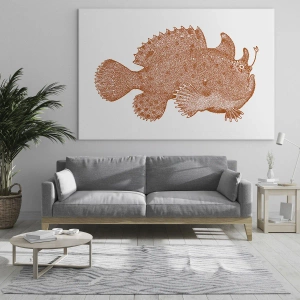 - Tento obraz zobrazuje hlubinnou rybu v rezavém, tečkovaném stylu. Originální forma, která kombinuje biologii s vintage estetikou.