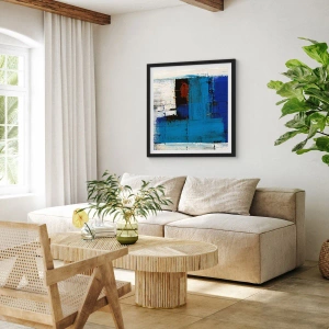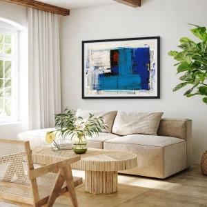 Plakát v černém rámu - Abstraktní kompozice v odstínech modré a bílé - 50x70cm - Tajemství modré - Moderní nástěnná dekorace do obývacího pokoje a ložnice ARTTOR