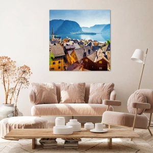 Obraz „Malebnější to být nemůže“ je unikátní kompozice, která zachycuje krásu idylické krajiny. Malebná vesnice ležící u klidného jezera, obklopená majestátními horami, vytváří harmonickou scénu, která vyzařuje klid a přírodní krásu. Sluneční paprsky zdůrazňují architektonické detaily a intenzitu barev a dodávají celku teplo a výraznost.