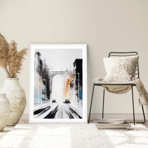 Plakát v bílém rámu - Studie města: architektura a pohyb - 50x40 cm