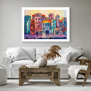 Plakát v bílém rámu - Město jako z pohádky - 50x50 cm