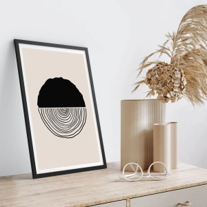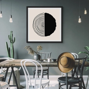 Plakát v černém rámu - Minimalistická grafika znázorňující průřez dřevem - 50x70cm - Půl na půl - Moderní nástěnná dekorace do obývacího pokoje a ložnice ARTTOR