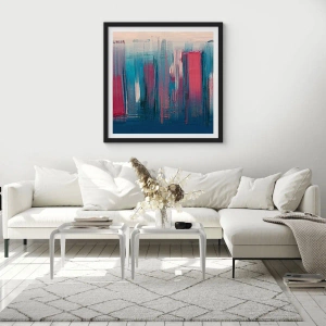 Plakát v černém rámu - Vertikální kompozice v modré a červené - 70x50 cm