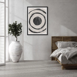 Plakát v černém rámu - Abstraktní soustředné kruhy v černé a bílé - 50x70cm - Přesný zásah - Moderní nástěnná dekorace do obývacího pokoje a ložnice ARTTOR
