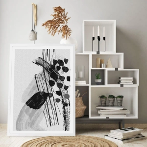 Plakát v bílém rámu - Černobílá organická abstrakce - 91x61 cm