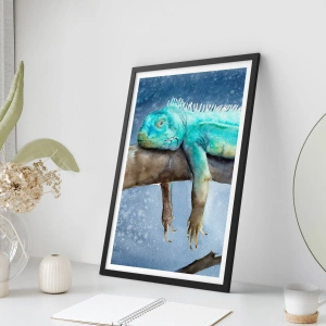 Plakát v černém rámu - Akvarelový obraz leguána odpočívajícího na větvi. - 50x70cm - Je to fajn! - Moderní nástěnná dekorace do obývacího pokoje a ložnice ARTTOR