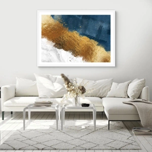 Plakát - Barvy léta - Abstraktní kompozice zlaté, tmavě modré a bílé