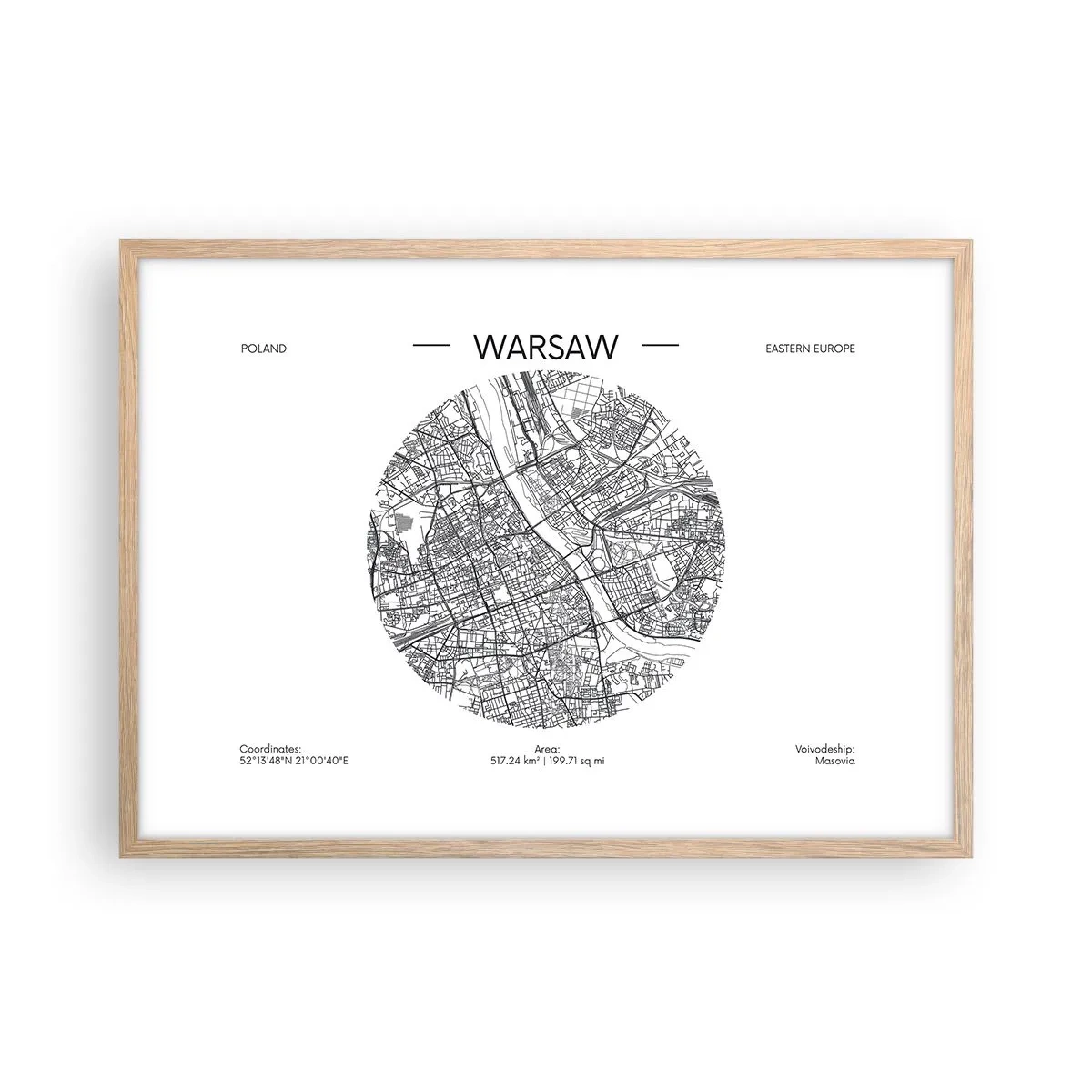 Plakát v rámu světlý dub - Anatomie Varšavy - 70x50 cm