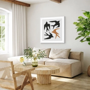 Plakát v bílém rámu - Vlaštovky - 60x60 cm