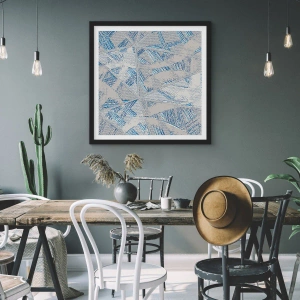 „V šedomodrém labyrintu“ je návrh pro ty, kteří hledají dekorace s jedinečným geometrickým charakterem. Tento plakát vnáší do každého interiéru harmonii, modernitu a vytříbenou estetiku.