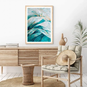 Plakát v rámu světlý dub - Modrá abstrakce se zlatým motivem - 91x61 cm