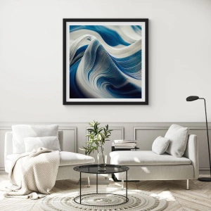 Plakát v černém rámu - Plynulost modré a bílé - 70x100 cm