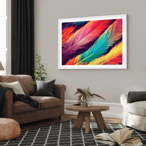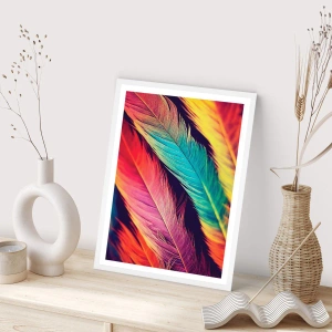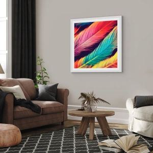 Plakát v bílém rámu - Opeřená duha - 50x50 cm