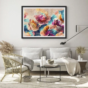 Plakát v černém rámu - Barevné bohatství kytice - 70x50 cm