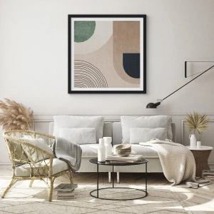 Plakát v černém rámu - Geometrická abstrakce v béžových, zelených a černých tónech - 50x70cm - Něžnost oválu - Moderní nástěnná dekorace do obývacího pokoje a ložnice ARTTOR