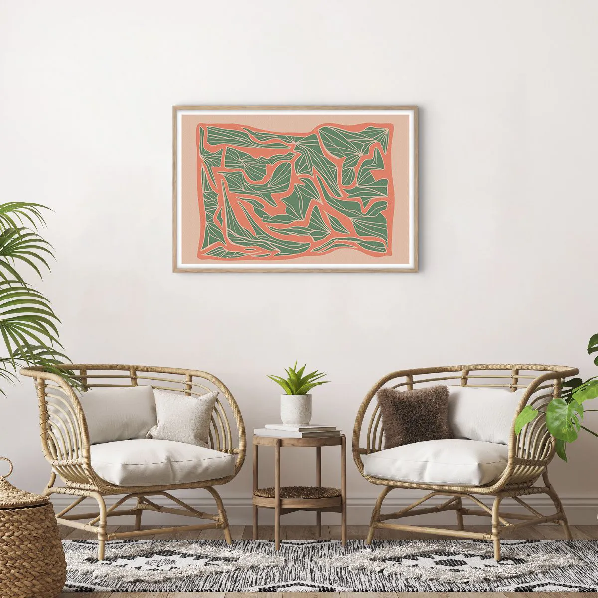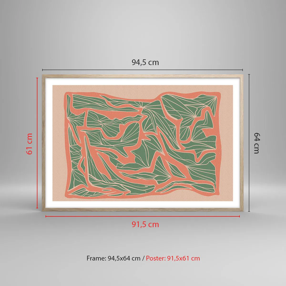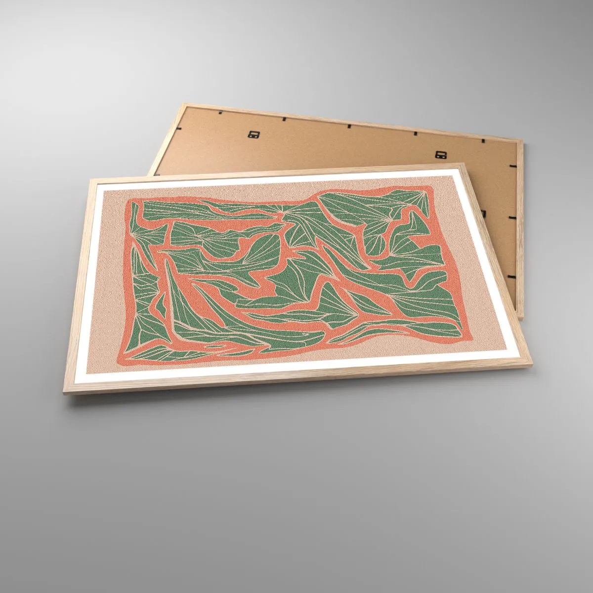Plakát v rámu světlý dub - Souboj korálů a zeleně - 91x61 cm