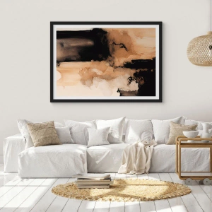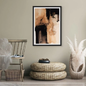 Plakát v černém rámu - Abstraktní kompozice v teplých odstínech hnědé. - 50x70cm - Poutavá abstrakce - Moderní nástěnná dekorace do obývacího pokoje a ložnice ARTTOR