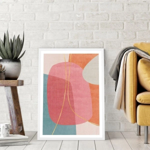 Plakát v bílém rámu - Pastelová kompozice se zlatou nití - 91x61 cm
