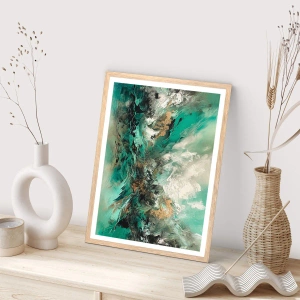 Plakát v rámu světlý dub - Smaragdově černé vlnobití - 70x50 cm