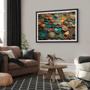 Plakát v černém rámu - Arabské ornamenty – variace - 30x30 cm