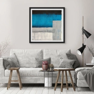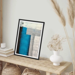 Plakát v černém rámu - Poetická kompozice šedé a modré - 40x30 cm