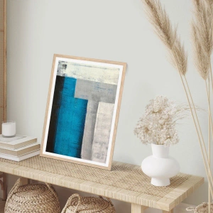 Plakát v rámu světlý dub - Poetická kompozice šedé a modré - 40x30 cm